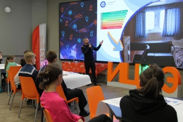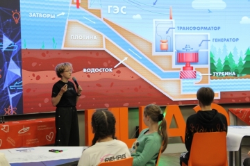Занятие продолжилось диалогом об источниках энергии. Вместе с сотрудниками ИЦАЭ ребята обсудили плюсы и минусы основных видов генерации электрической энергии – тепловой, водяной, солнечной, атомной и ветряной.